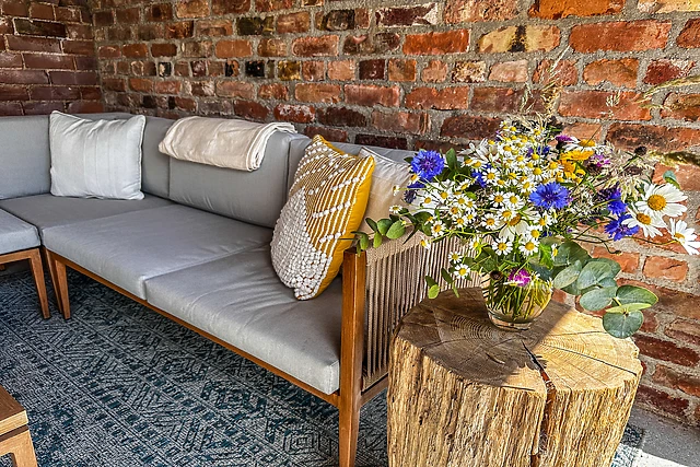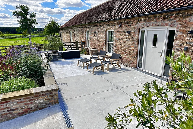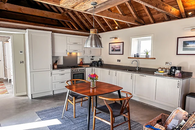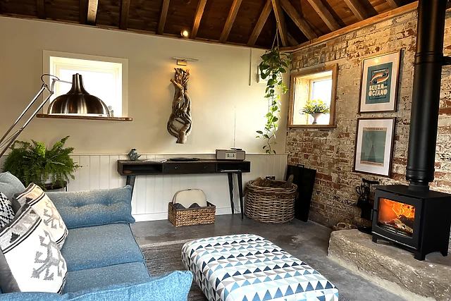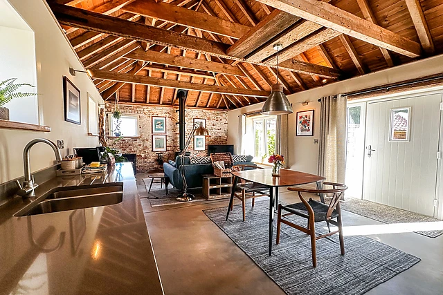 Flittermouse Barn is a two-hundred-year-old barn sited close to the Yorkshire coast on the edge of Hornsea, perfect for couples seeking a romantic getaway, offering exceptional interiors and a serene setting with an excellent private garden. The barn features open ceilings that reveal the timber structure, as well as exposed brickwork and polished concrete floors.