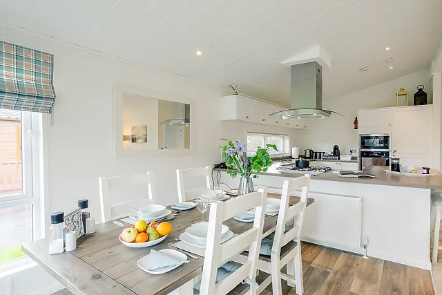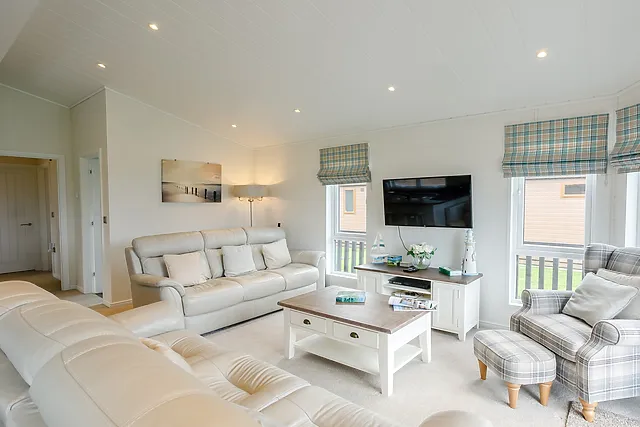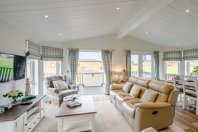 The open-plan living space is a homely sanctuary where you can whip up a feast in the well-equipped kitchen or unwind on the reclining sofa with entertainment from the Smart TV, Netflix, and Amazon Prime.