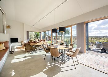 enter via the boot room. to the left lies the utility room and shower room with wc. down the hallway, there is an impressive open-plan living area, complete with floor-to-ceiling windows. snuggle on the sofa and catch up on your favourite boxset on the smart tv while you warm your toes in front of the crackling wood burner. in the evenings, convene with your guests around the large dining table while the designated chef flexes their culinary skills in the well-appointed kitchen. in the morning, sip your coffee at the breakfast bar before heading out for the day. the property benefits from three bedrooms: two king-size rooms with smart tvs and one boasting access to a scenic, raised terrace and an elegant en-suite bathroom with a free-standing roll-top bath, shower and wc. the third bedroom features an en-suite shower room and a flexible super-king-size room with zip-and-link beds that convert to twins on request. down the hallway, you’ll find a family bathroom with a bath and a wc. savour peace and serenity in the mediterranean-style garden: recline in the sunken lounge area with outdoor tv while you enjoy sundowners with your guests. or enjoy a starlit dip in the sparkling wood-fired hot tub, followed by a relaxing sauna in the log cabin or watch tv on the outdoor television. private parking is available for four cars.