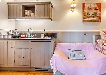 step inside to a bright and welcoming open-plan living space, thoughtfully designed for relaxed, easy holiday living. the well-equipped kitchen has everything you need to whip up anything from hearty breakfasts to cosy evening feasts, shared at the charming farmhouse-style table set for two. after dinner, curl up on the plush sofa in front of the smart tv. the bedroom offers a restful retreat, complete with a king-size bed, bedside tables, and plenty of storage. from the window, enjoy peaceful views across the cottage courtyard and out over the surrounding fields. a sleek shower room with a walk-in shower rounds off the interior.