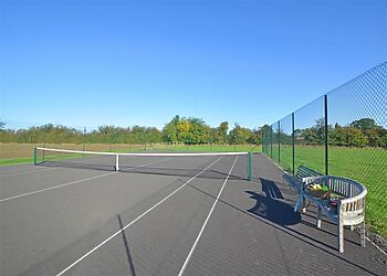 if you wish to dine alfresco, take your pick of outdoor tables – one on the front patio looking across open fields or an enclosed patio out the back. here, you’ll also find a reclining chair, bbq and hot tub to relax after a day’s adventuring. the lodge is half of a complex (larger parties can book both properties), which share a year-round tennis court and retro games room, perfect for kids big and small to let off steam!
