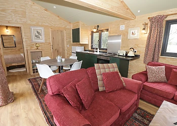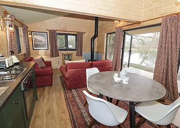 A stunning, single-storey lodge set upon a working farm in Draycote near Dunchurch, Warwickshire. Lakeside views. Rural. Romantic. Ryton-on-Dunsmore 6.7 miles; Coventry 10.8 miles; Royal Leamington Spa 11.1 miles.