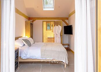 step inside this light-filled lodge and immediately feel the calm take hold. thoughtfully designed and finished to an exceptional standard, the open-plan living space blends comfort and elegance, creating a beautiful ambience where peace and luxury meet. exposed beams, remote-operated velux blinds and wide bi-fold doors allow natural light to pour in, while underfloor heating throughout ensures year-round comfort. the seating area is relaxed yet refined, with a smart tv and speaker-enabled mirrors adding a contemporary touch. the kitchen is sleek and fully equipped with premium neff appliances, including an oven, ceramic hob, dishwasher and washer/dryer, alongside a dolce gusto coffee machine stocked for slow mornings. a breakfast bar provides the perfect place to linger over coffee or enjoy a leisurely meal. the bedroom is a tranquil sanctuary, featuring a sumptuous king-size bed dressed in 300-thread-count egyptian cotton bedding. soft lighting, bathrobes and a beautifully styled en-suite shower room with l’occitane toiletries complete the sense of indulgence.