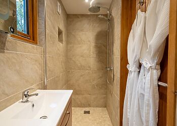 you’ll enter into a welcoming hallway, then turn left into the open-plan farmhouse kitchen and dining area. this space is warm and sociable, with oak beams, exposed stonework, wooden floors and underfloor heating, plus a traditional rayburn range cooker set into the original fireplace. the large table is ideal for shared meals and planning the next day’s adventures. straight ahead, the cosy lounge invites you to unwind with soft furnishings, books, games, a smart tv and a feature stone fireplace with a wood burner for relaxed evenings in. stairs lead to the first floor where three good-sized double bedrooms feature original wooden floors, oak beams and feature fireplaces. there are also two bathrooms, both with showers and wcs and one with a ball and claw foot bath, for if you fancy a holiday soak.