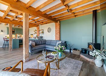 entering this stunning barn, you’ll be greeted by the spacious and tastefully arranged open-plan lounge/kitchen/diner with impressive floor-to-ceiling windows looking out across the grounds. the cheery lounge has a welcoming wood burner and ample seating, with the handsome dining area over by the large windows, offering a light and relaxing spot for a family meal, which you can prepare in the fully equipped and beautifully organised kitchen. from the centre of the main living area, a spiral staircase winds up to the first floor, where you will find a stylish shower room and two fresh and airy bedrooms with original exposed wooden beams: a cosy king-size room with an additional sofa bed, and a charming super-king-size room. the master suite also features a freestanding bath and a private terrace offering far-reaching views. designed in collaboration with the architect, the bespoke lighting in each barn on this site is a harmonious blend of functionality and artistry. thoughtfully crafted to complement the unique character of each property, it offers a seamless combination of floor, mood, and elegant controlled lighting.