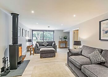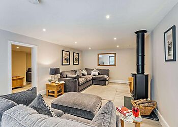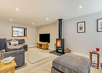 - spacious lounge area with large sofas and a modern wood burner for cosy evenings in.