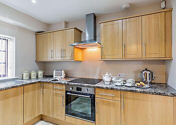 - open-plan design with a stylish, fitted kitchen including an electric oven, hob, fridge/freezer, dishwasher, and microwave.