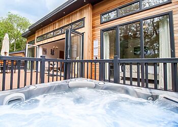 - private hot tub surrounded by decking and outdoor seating, perfect for summer nights.