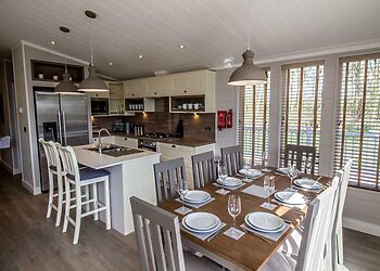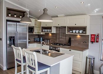 begin your stay in the thoughtfully designed ‘bootility’ area and kick off muddy boots after a countryside stroll. wander through to the open-plan kitchen, lounge and dining area – a welcoming, beautifully finished space. floor-to-ceiling bi-fold doors flood the lodge with natural light, while the large corner sofa invites you to sink in, switch on the wood burner-effect electric fire and enjoy uninterrupted woodland views. a smart tv with ps4, offers games, movies and catch-up tv at your fingertips. the kitchen is both stylish and functional, complete with shaker units, quartz worktops and a solid wood breakfast bar. the calming colour palette continues into the spacious master bedroom, where you'll find a walk-in wardrobe, a dedicated dressing area and a private en-suite shower room. the twin bedroom features a wardrobe and also has an en-suite bathroom, ensuring everyone has their own space. both bedrooms come with their own smart tvs for slow mornings or evening wind-downs. a separate wc is located near the front entrance for added convenience.
