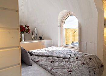 A superb one-bedroom igloo pod perched on Weatherhill Farm in Burshill, East Riding of Yorkshire. Romantic. Private garden. Open-plan. Off-road parking. Hornsea 8.1 miles; Beverley 11.4 miles.