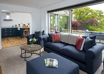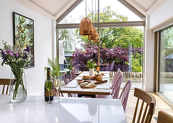 A stylish, five-bedroom home resting in Stirton near Skipton, North Yorkshire. Close to amenities. Contemporary. Hot tub. Countryside views. Grassington 9.9 miles; Harrogate 23 miles.