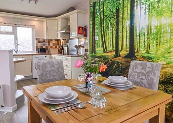 Located between pickering and thornton-le-dale, this characterful lodge provides a cosy retreat for groups of eight family or friends looking to explore the natural wonders and attractions of yorkshire. locally, a farm shop and a friendly country pub offer amenities and a night off from cooking, just 1 mile from this delightful property. guests can immerse themselves in the charm of local heritage by boarding the north yorkshire moors railway just 2 miles away at pickering station, with scenic steam train journeys meandering through breathtaking landscapes. nature enthusiasts will want to explore dalby forest, 5 miles away, offering an abundance of walking and cycling trails, while those looking for a coastal escape can visit whitby, scarborough, or filey, all within 25 miles, and offering traditional seaside days and walks along the coastline.step inside to discover an expansive open-plan living area, where cathedral-style floor-to-ceiling windows flood the space with natural light. the lounge features comfortable seating and a large smart tv, making it a perfect space for cosy evenings. the kitchen comes fully equipped for all your self-catering needs and includes a handy island breakfast bar. adjacent to the kitchen is a stylish dining area with ample space for the whole group to enjoy meals together. down the corridor, you’ll find two king-size bedrooms with luxurious en-suites, as well as two twin bedrooms and a modern family bathroom complete with a shower over the bath. each bedroom features a tv and is beautifully appointed, combining rustic charm with contemporary elegance.the outdoor space is equally enticing, featuring an enclosed decked area perfect for al fresco dining. relax in your private hot tub while soaking up the serene rural views or fire up the bbq for a memorable evening. guests with four-legged friends will love the large 20-acre dog walking field.