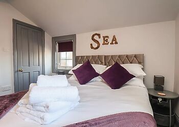 Historic Yorkshire coastal property sleeping 16 across 8 en-suite bedrooms. Features an original pub bar, service hatch to the neighbouring pub, private hot tub on the roof terrace and an open fire. Within 1 mile of the coast. Up to 3 small dogs stay free.