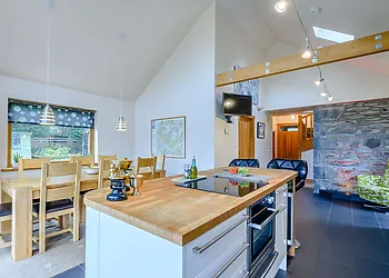 enter into this property, and find yourselves in the fully equipped kitchen/diner where a cup of tea or wee thimble of whisky is on the cards. carry your drinks through to the earthy-toned lounge and put your feet up on the pillowy sofas. with a tv, french doors to the courtyard garden and plenty of seating, this is the ideal space to snuggle at the end of a brilliant day.