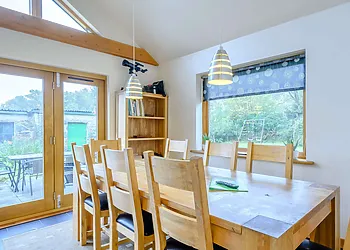 style meets function in the property’s incredible outdoor space, with both a garden and an outbuilding offering much to be impressed by. the private decked area is equipped with plenty of outdoor seating, a charcoal bbq, an outdoor shower and a hot tub. when the weather doesn’t quite work for al fresco dining, sit in the fabulous conservatory and take in the pretty views. for those who don’t want to relax entirely throughout their stay, the studio is equipped with workout equipment and weights.