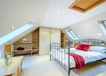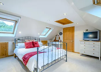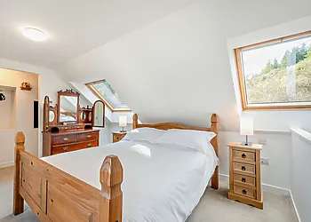 you’ll need to ascend to the first floor to find the property’s lounge, an undoubtedly comfortable space with skylights that can be thrown open to take in those elevated views. in here, you’ll find plenty of soft seating options that face a smart tv for evenings of entertainment, or play on the ps4. mosey along the hallway to reach the two remaining bedrooms, a smaller double and another zip-and-link super-king-size bed. this latter room is laid out with an en-suite, and a final family bathroom completes this floor.