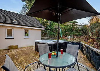 the outside space here is one of the highlights of the property. enjoy the breathtaking views over the clyde estuary, the argyll hills and the mighty ben lomond. when it rains, retreat to the covered decking area, beside the hot tub, and enjoy a scenic evening tipple. in good weather, fire up the bbq and dine alfresco under the sun. ample private parking is also available.