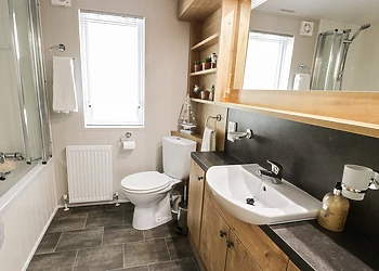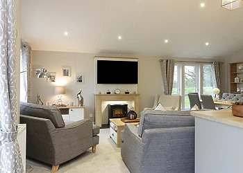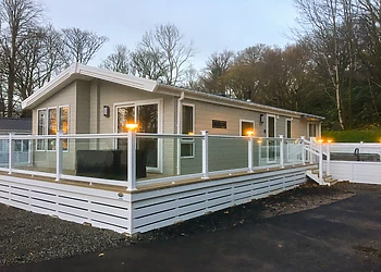 A luxury, detached lodge based on the Wemyss Bay Holiday Park in Inverclyde, Scotland. Decking and hot tub. Open-plan living. Incredible views of River Clyde.