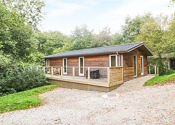 A family-friendly, two-bedroom woodland lodge located in Lanreath, Cornwall. Hot tub. Open-plan. Lake views. Pet friendly. Pelynt 4.2 miles; Polperro 7.7 miles; Looe 8 miles.