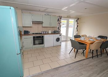 Alltmaen Farmhouse offers a spacious countryside retreat for large groups. Located on a working farm, it boasts sweeping views of the countryside and a large wood burner for cosy evenings. The fully-equipped kitchen and outdoor BBQ area make it ideal for family gatherings. With four bedrooms and ample outdoor space, there’s room for everyone to spread out and enjoy.