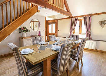 A contemporary semi-detached barn conversion near Beguildy, Powys. Open plan living, underfloor heating. Exposed beams. Hot tub overlooking the Welsh countryside. Walks from doorstep. Pets Welcome.